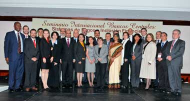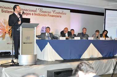 Representantes de bancos centrarles de México, Uruguay, Pakistán, India, entre otros países, compartieron sus experiencias en el Seminario internacional de Bancos centrales: Sistemas de Pagos e Inclusión Financiera. |