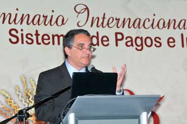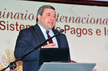 El director del Banco Central, Pedro Delgado, anuncia un nuevo sistema funcional para las transacciones electrónicas. Este mecanismo posee una estructura probada, la cual permite agilizar pagos y reduce los costos de las transacciones. |