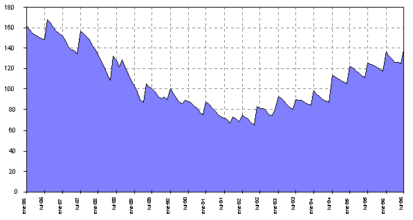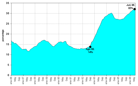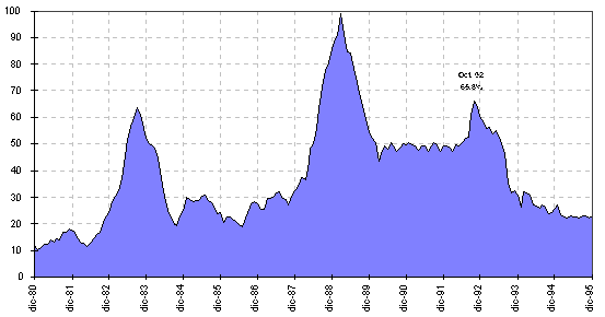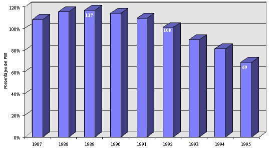 de 117% en 1989, a 101% en 1992 y a 69% en 1995.