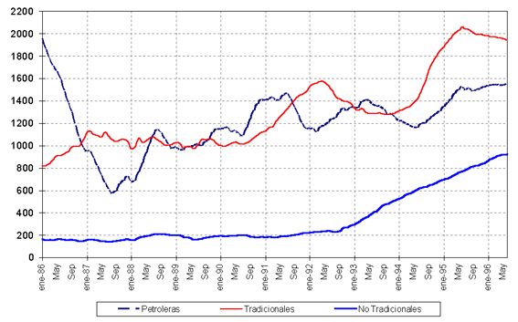 importante entre 1992 y 1995, lo que se explica por la apertura comercial,