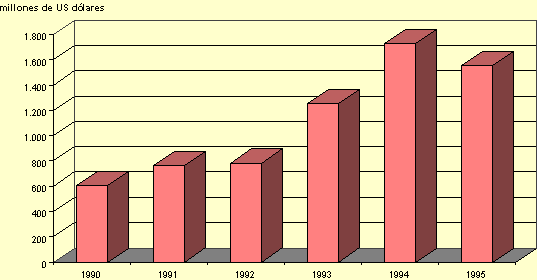 que en 1994 fue de US$759 millones (4.5% del PIB), lo cual refleja la incertidumbre