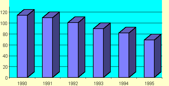 de US$267 millones (1.5% del PIB), 52% menor al de 1994, porque las importaciones