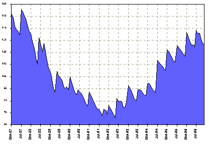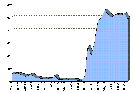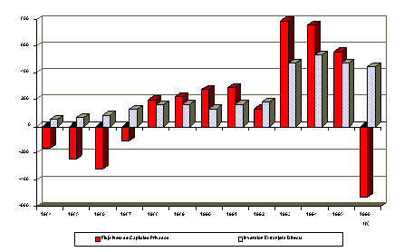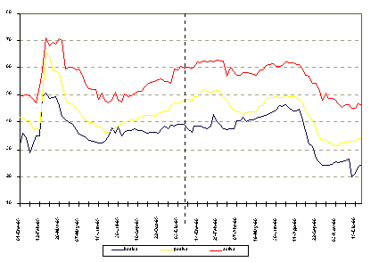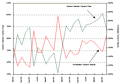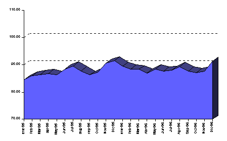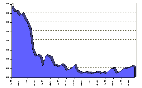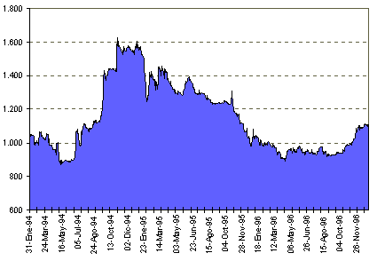 | Pese a la ausencia de disciplina fiscal que se había observado desde comienzos de 1996, lo que pudo afectar los resultados en otras variables, al menos los logros en materia de control anti-inflacionario se explican, en lo fundamental, por la vigencia del esquema de bandas cambiarias, que estuvo acompañado de un estricto control de los agregados monetarios.