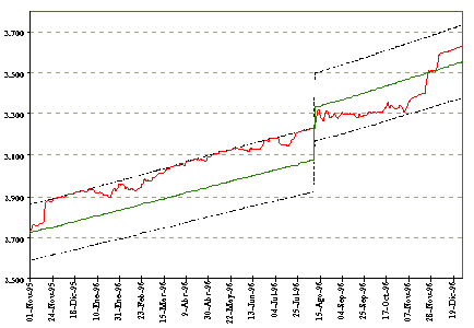 Sin embargo, la calibración técnica de la banda cambiaria del mes de agosto de 1996 (tanto del nivel de la paridad central como de su pendiente), fue efectivamente respaldada por los agentes económicos, lo que posibilitó una evolución de la cotización por debajo de la paridad central de la banda. Por su parte, el Banco Central del Ecuador, a través de su mesa de cambios, mantuvo el compromiso de defender la banda cambiaria preestablecida, para lo cual reguló la cotización intrabanda, evitando así llegar a una intervención forzada, como la que habría sido necesaria si se habría permitido que el dólar se ubique en el techo.