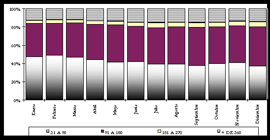 En efecto, a partir de esa fecha la calidad de la cartera refleja ya una tendencia firme y acelerada hacia un mayor deterioro, pues el índice de morosidad pasa de niveles del 5% al 9% a niveles alrededor de los cuales se mantiene hasta mediados de 1997.