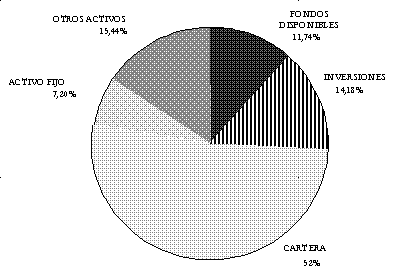 Superintendencia de BancosLa composición de los activos a nivel del sistema no ha registrado variaciones substanciales durante 1997. La cartera constituyó el rubro más importante (52%), seguido de las inversiones (14.8%), fondos disponibles (11.74%) y otros activos. Esta composición es muy similar a la observada a diciembre de 1996 en que los porcentajes de estas cuentas representaban 50.1%,12.5% y 12.7% respectivamente.