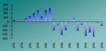 Como se observa en el Gráfico 1, en el transcurso de 25 años contados a partir de 1972 se pueden identificar cuatro instancias en las cuales el Ecuador experimenta importantes shocks exógenos, de los cuales sólo uno de ellos - el que tiene lugar en la década de los 70- es de carácter positivo, mientras que los tres restantes sucedidos a partir de los años 80, son negativos.