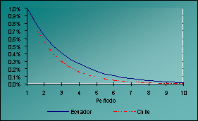El valor del coeficiente RES1(-1) indica la velocidad con que se ajustan estos errores hacia la tendencia de largo plazo. En efecto, si se produce una variación de 1% en la tasa de crecimiento, cada trimestre se corregirá un 36% de la brecha, anulándose el efecto al cabo de 10 períodos, tal como se observa en el gráfico 9. Cabe mencionar que el proceso de ajuste es más lento aún que el caso chileno, pues en éste último se utilizan datos mensuales.