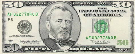 - El númeral grande 50 impreso en la parte inferior derecha es fácil de leer.